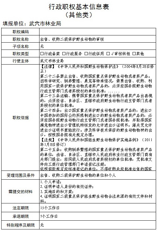 其他类(审核转报)-98出售、收购二级保护野生动物的审核