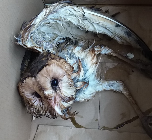 6月30日早上,市林业局野生动植物保护站工作人员接到市公安局110电话:有一江苏籍许姓船员报警称其在船舱中发现一只猫头鹰,浑身湿透蜷缩在角落,也不知有无伤病,希望专业人员过来予以救护。