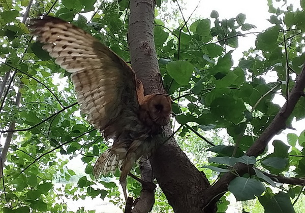 7月9日,365bet线上足球野生动物保护工作人员在长江外滩防护林将一只救助的国家二级重点保护动物--草鸮(俗称猴面鹰)放归大自然。
